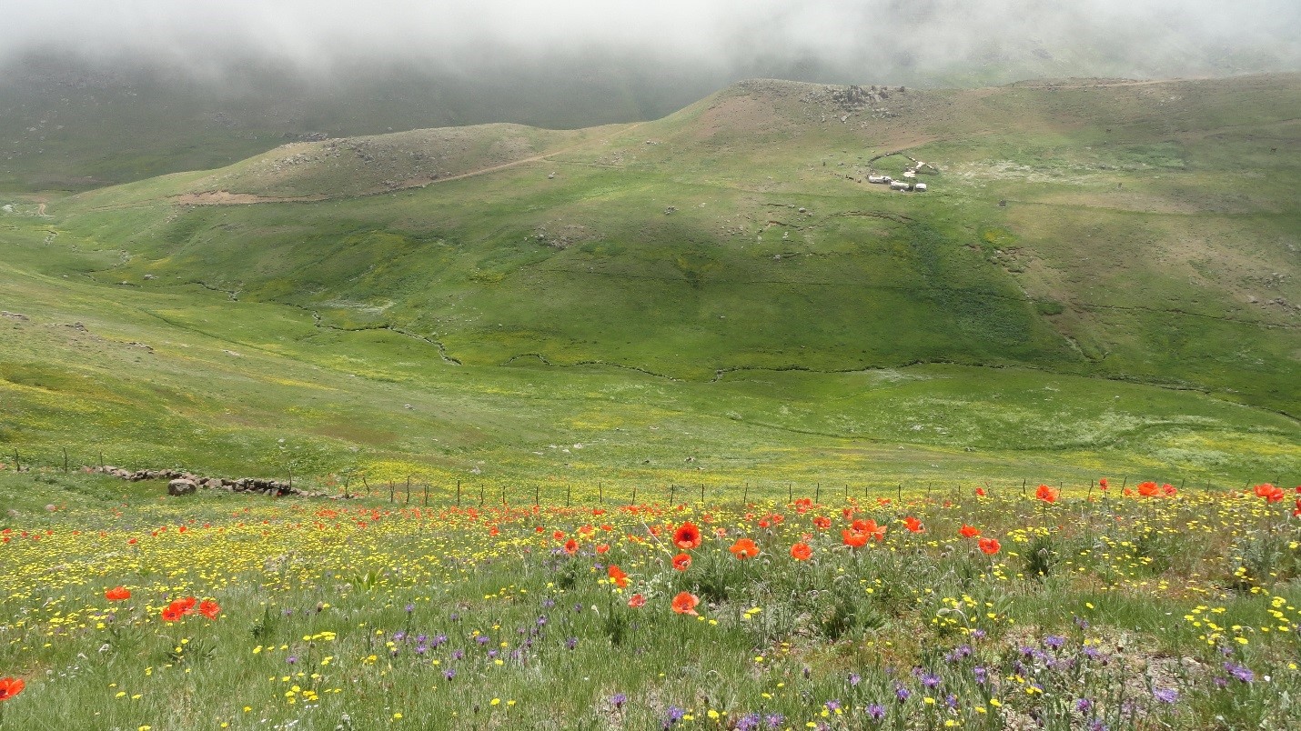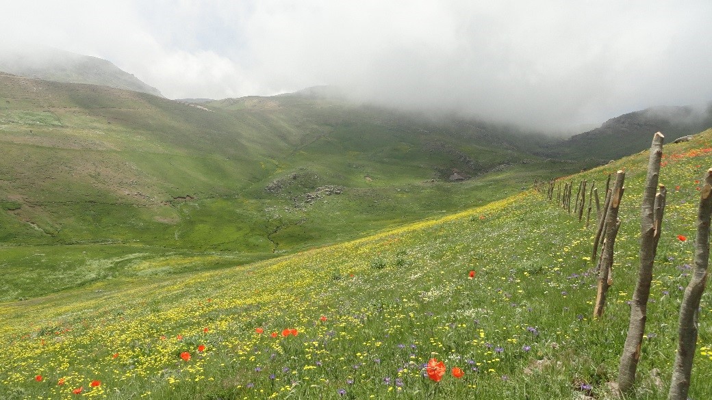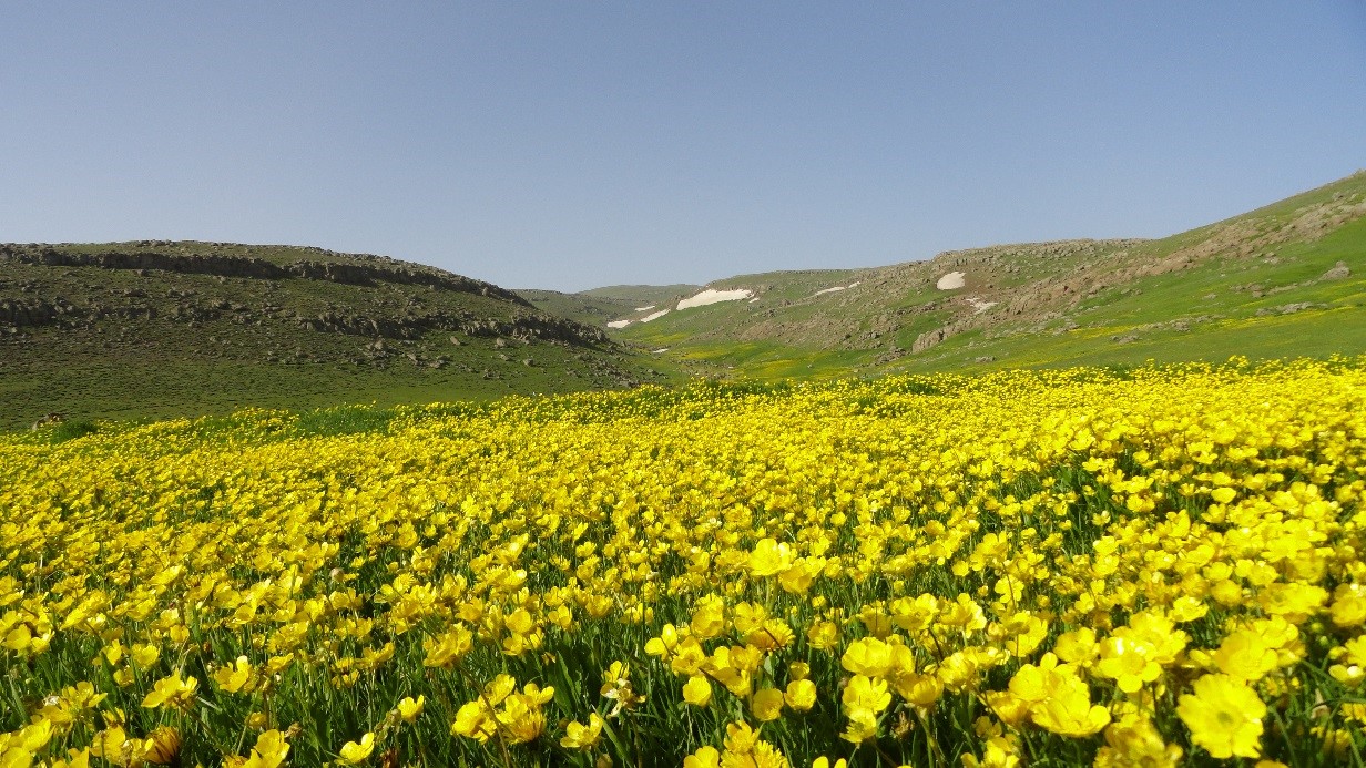 دشت گل های زرد در بین مسیر چشم نواز است